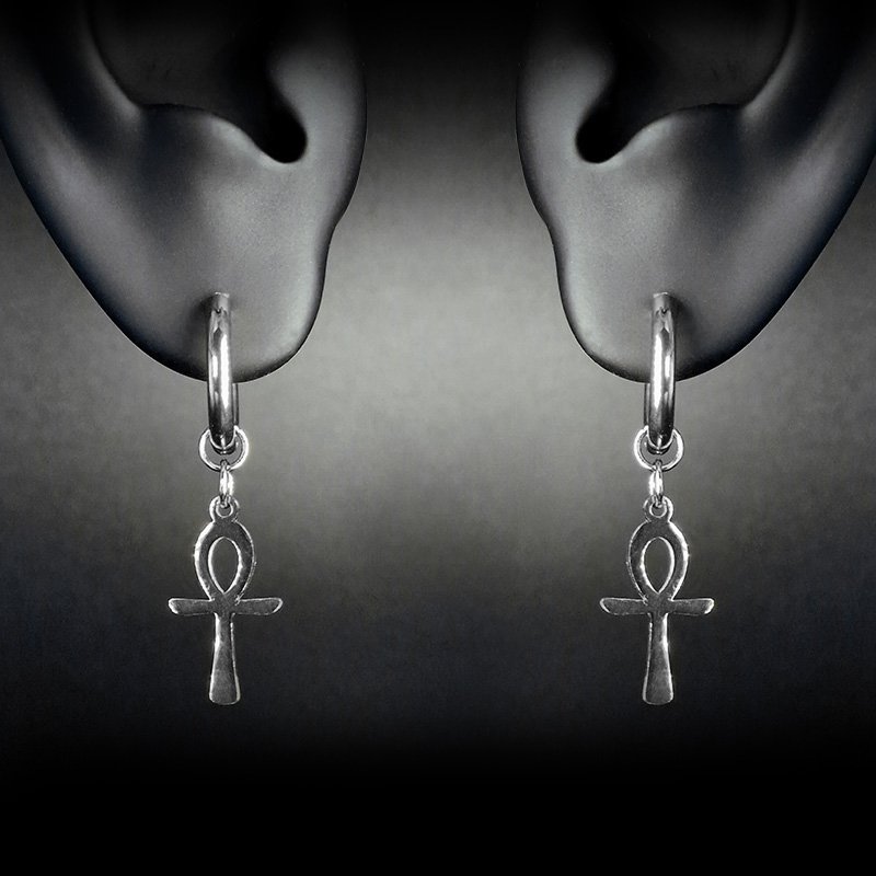Boucles d’oreille croix de Ankh – Acier Inoxydable