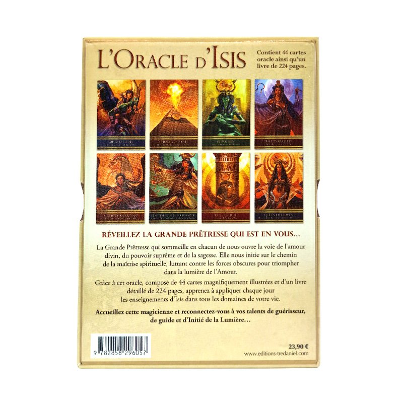 La Grande Prêtresse qui sommeille en chacun de nous ouvre la voie de l’amour divin, du pouvoir suprême et de la sagesse. Elle nous initie sur le chemin de la maîtrise spirituelle, luttant contre les forces obscures pour triompher dans la lumière de l’Amour. Grâce à ces créations artistiques et le livre très approfondi de 224 pages, apprenez à appliquer chaque jour les enseignements d’Isis dans tous les domaines de votre vie. Accueillez cette magicienne et reconnectez-vous à votre part de féminin sacré.